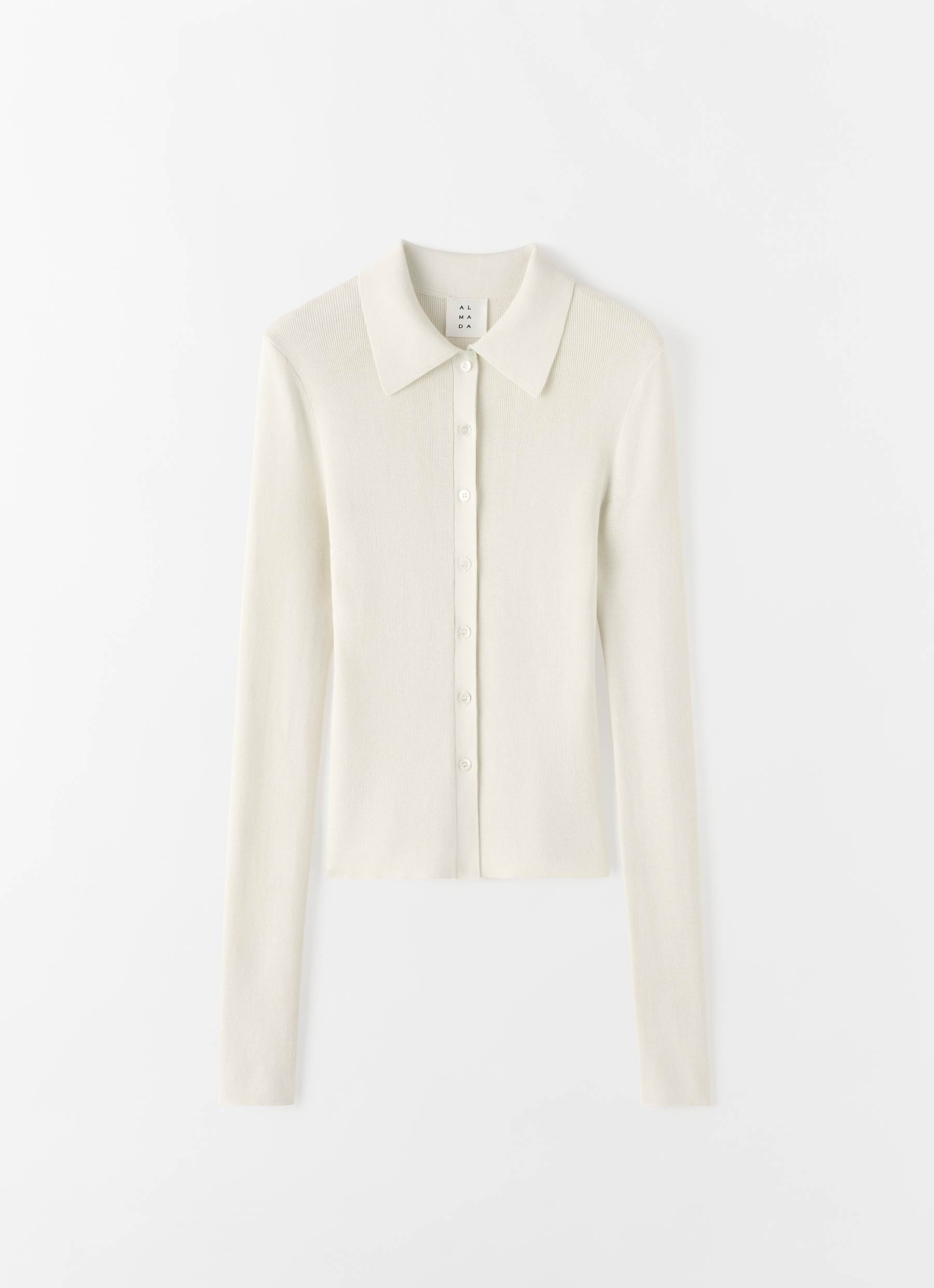 Lili Rib Cardigan is crafted from a lightweight rib-knitted silk, wool, and cashmere blend. Cut to a slim silhouette with a neat collar. Finished with tonal buttons along the front.