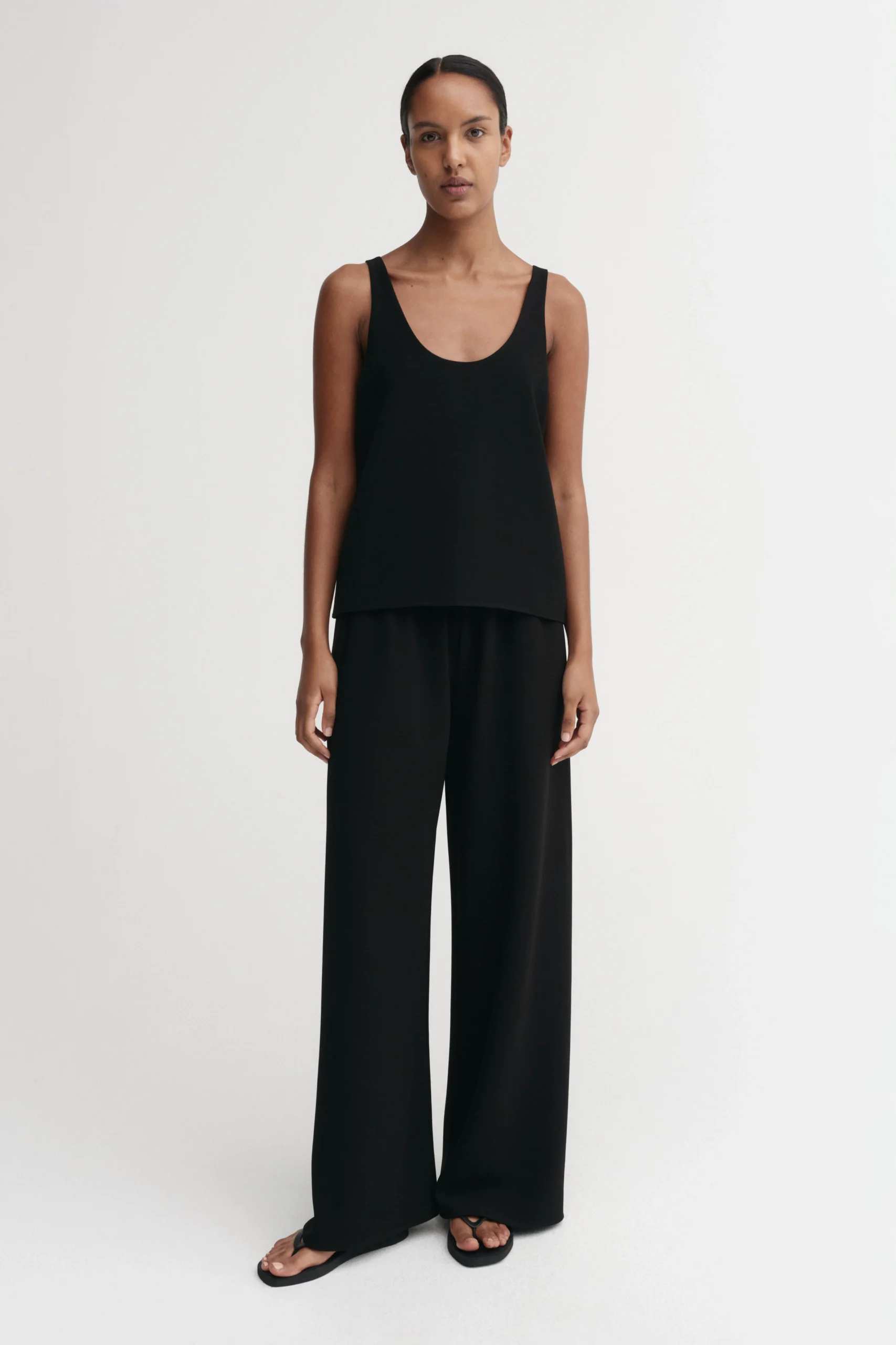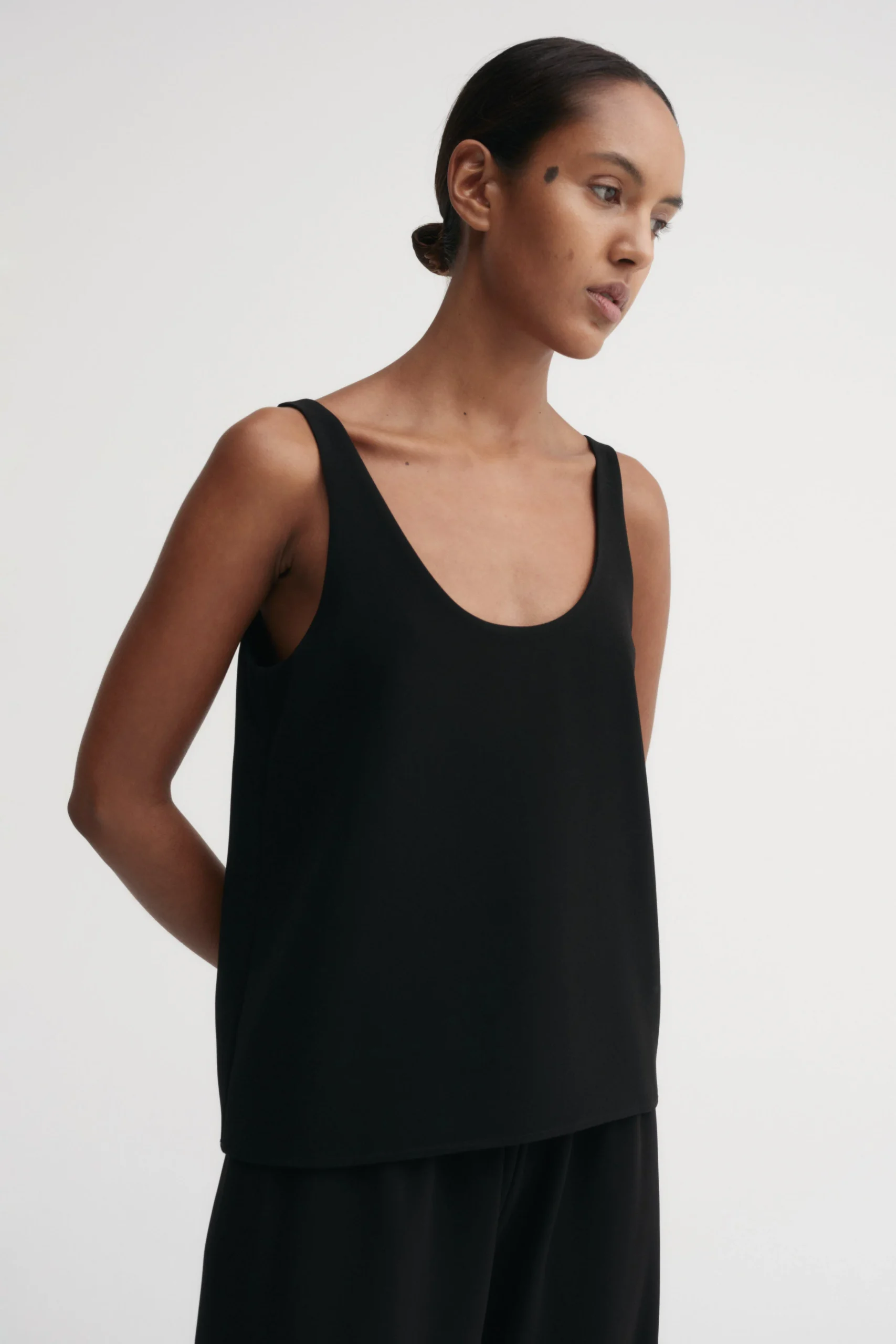Romy Crepe Top is made from a luxurious and responsible crepe fabric comprising 71% Naia™ acetate and 29% polyester. It has a loose relaxed silhouette with a scooped back and neckline enhanced by generous armholes.