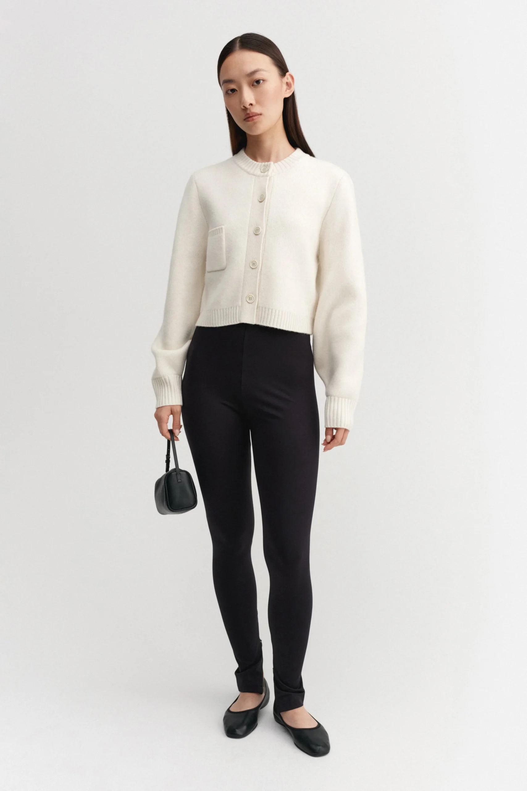 Zozo Cardigan is densely knitted from the softest cashmere and merino wool blend. The cardigan is designed for a slightly boxy and loose fit with a cropped silhouette. The cardigan is featured with a classic crew neckline, dropped shoulders, tonal buttons and a little patch pocket. Rib-knitted detailing in cuffs, hem and the pockets.