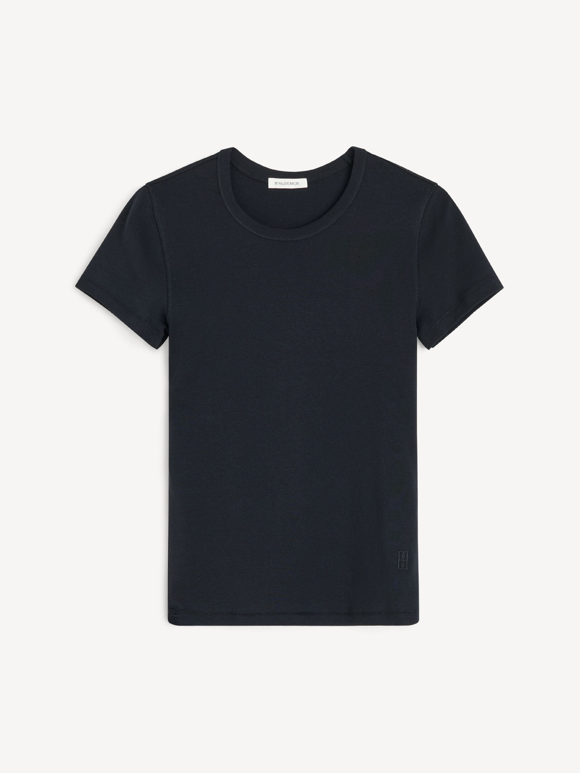 Come spring, summer and beyond, a minimalistic organic cotton T-shirt slots right into any lineup โ such is the Alicia design. The short-sleeved T-shirt is detailed with nothing but a small, embroidered monogram. Use as a layering piece as the weather transitions.