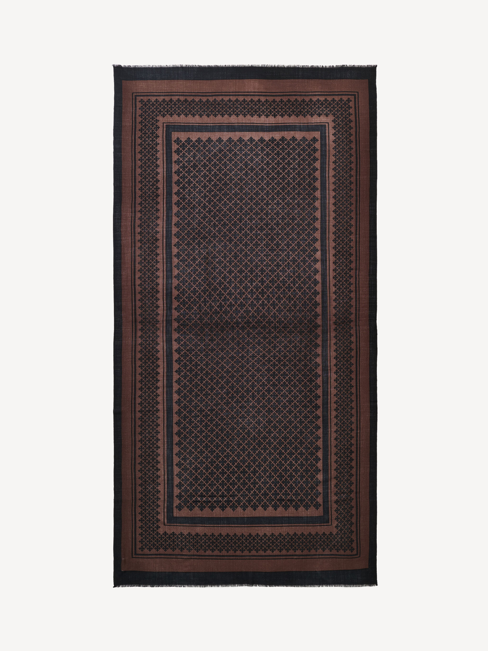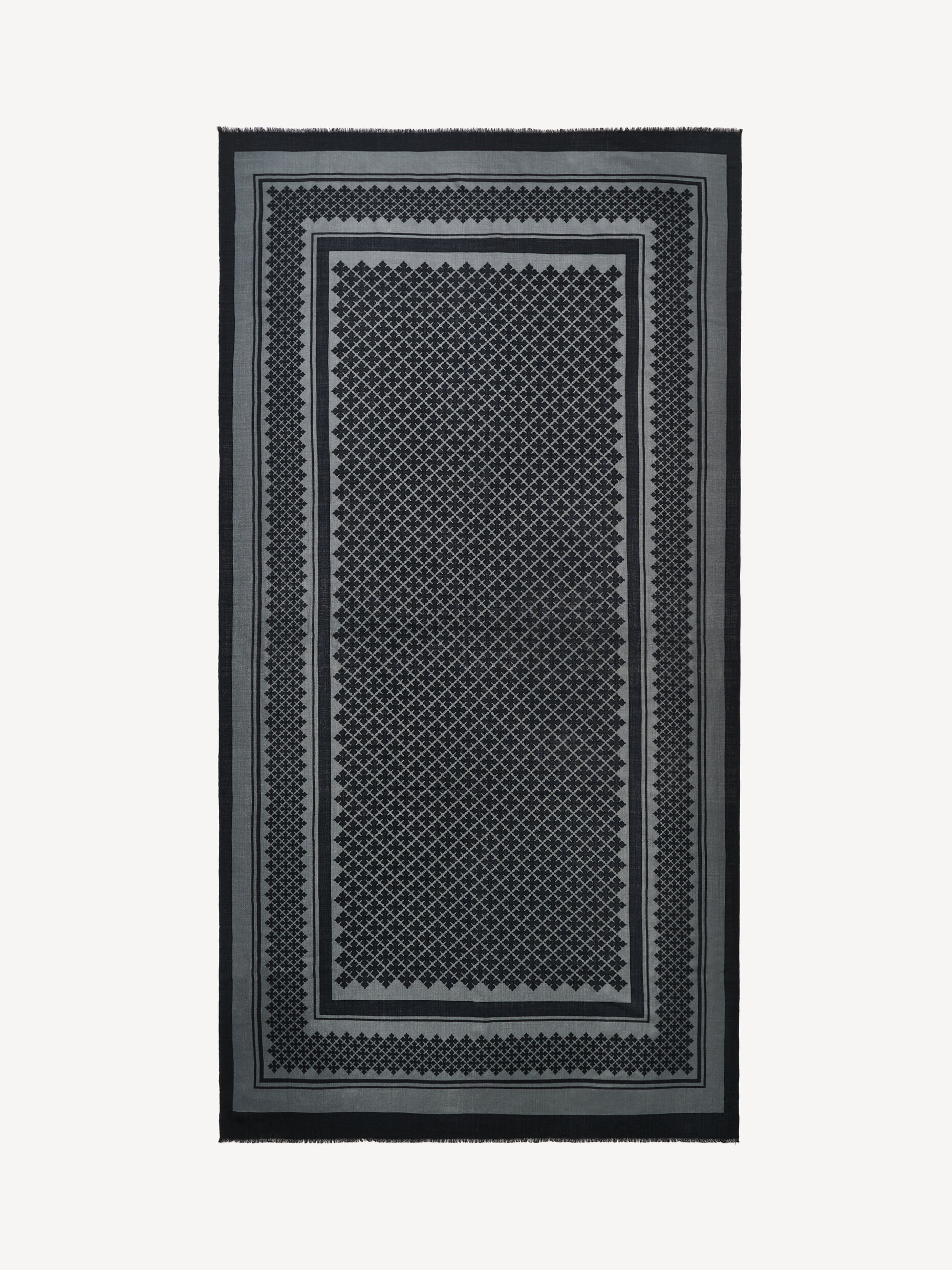 The generous size and supremely soft handle of this rectangular wool scarf make it an everyday essential. Detailed with frayed hems and our Signature Flower motif, it adds a pop of artisanal edge to looks. Wrap it around your neck or wear over your shoulders.