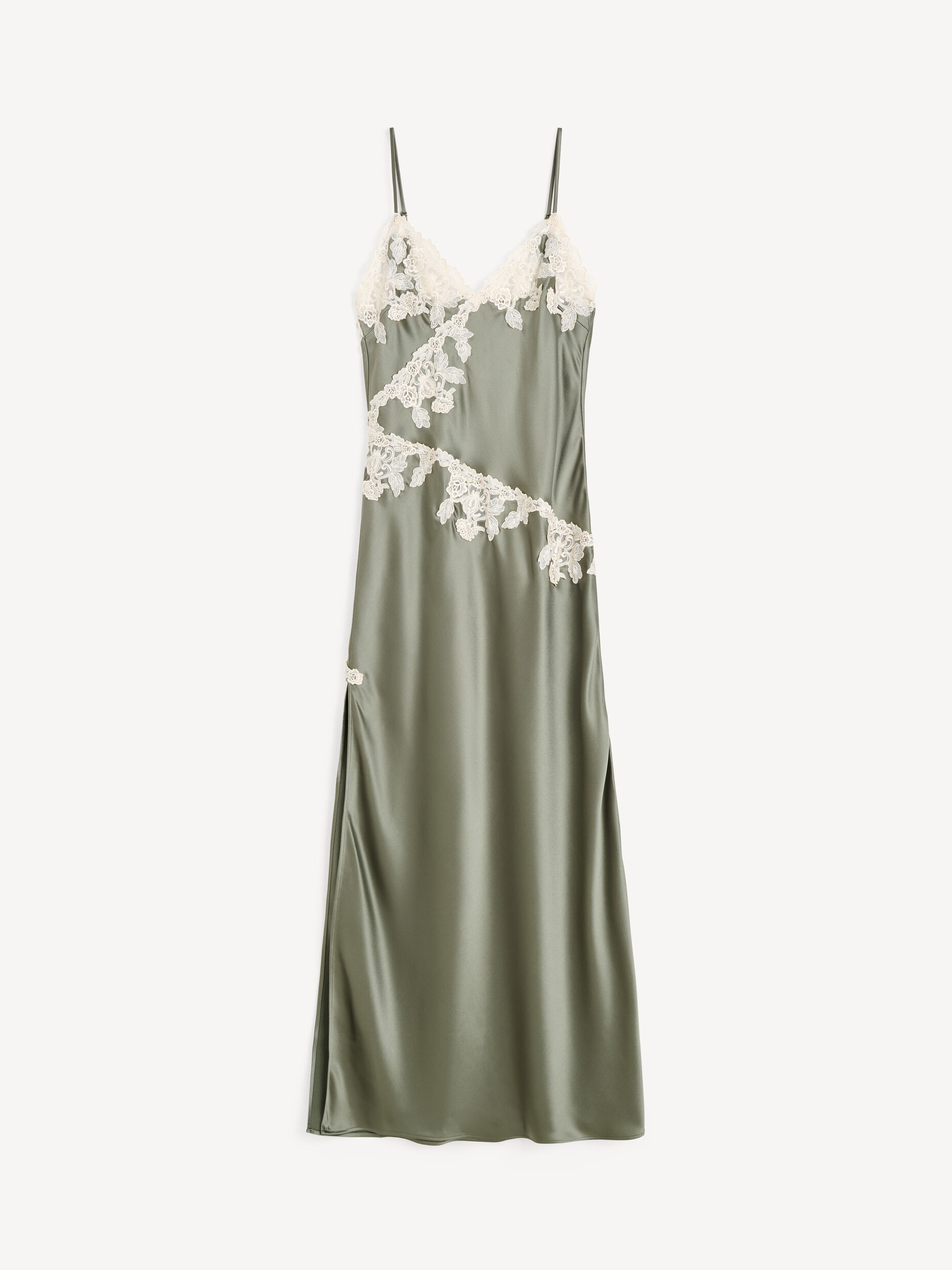 Add a sensual and romantic appeal to your festive wardrobe with the Vera maxi dress – which stands out with its luxe satin and vintage-inspired lace trims. The maxi design is completed with a V-neck, adjustable straps and a high side slit.