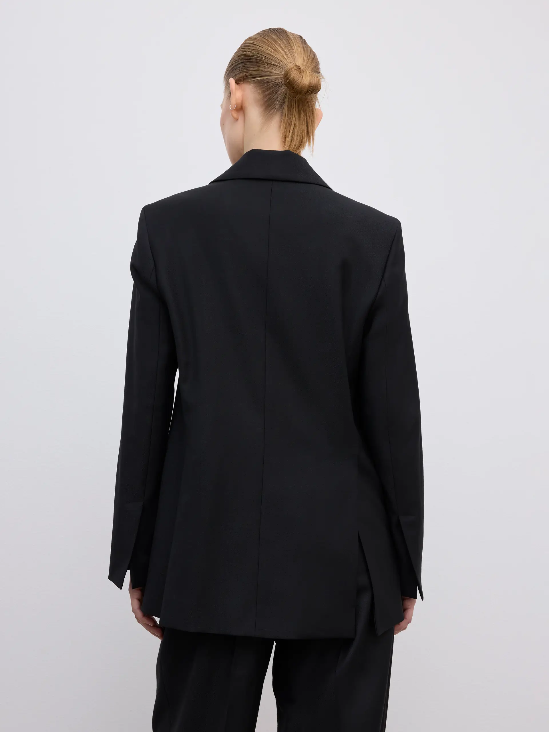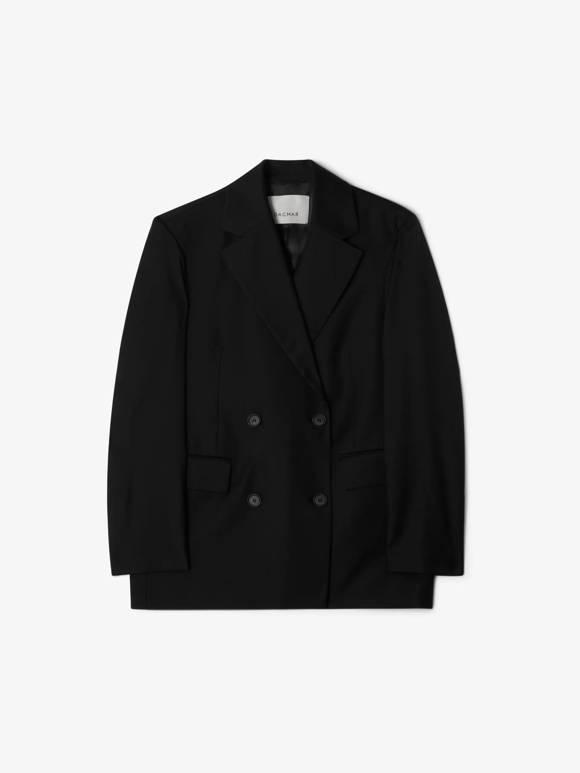 The Classic Wool Blazer is a sharply tailored jacket with an effortless flow. Double-breasted, this sophisticated Dagmar classic is a wardrobe icon complete with concealed snap closures, a notch lapel, a back vent, and flap pockets at the sides.