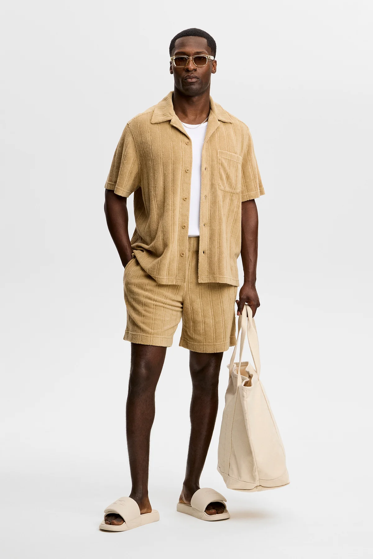 The Allan Stripe Terry Shorts serve up that just‑off‑the‑beach energy, even in the middle of the city. Made in Portugal from organic cotton terry, they feel incredibly soft and lightweight, with French terry loops on the inside for extra comfort. A regular fit, elastic drawstring waist, and practical pockets make them an easy everyday choice. Pair them with a tee or matching terry shirt for a relaxed resort‑inspired look.