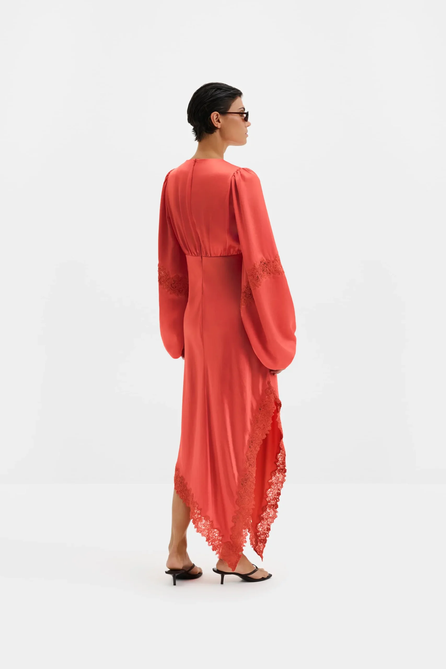 - Asymmetric hem with lace trim