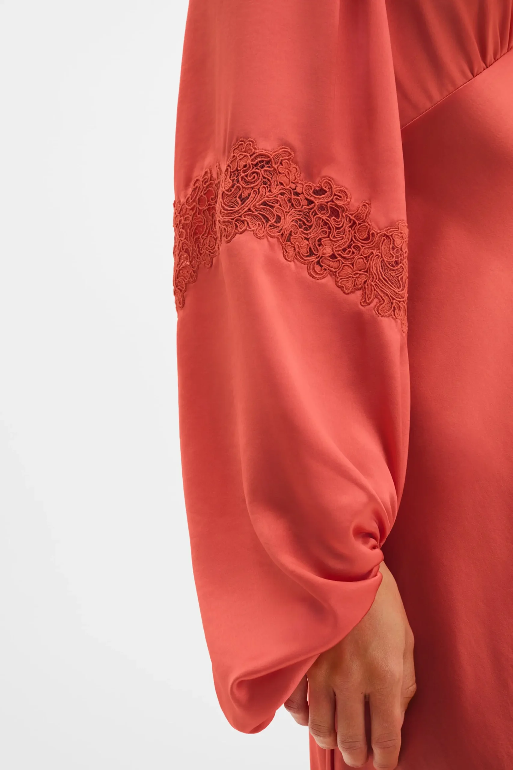 - Long voluminous sleeves with elasticated cuffs