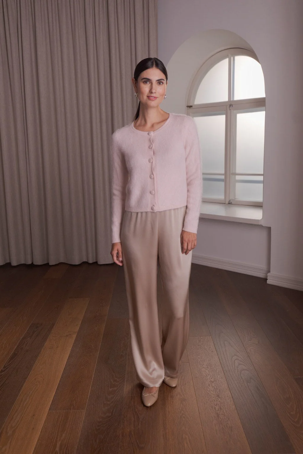 Long-Sleeved Cashmere Cardigan, Katie cashmere cardigan, for women with fitted sleeves and narrow knit turns at the cuffs and hem. The straight, slightly shorter hem and wide round neckline fall beautifully.