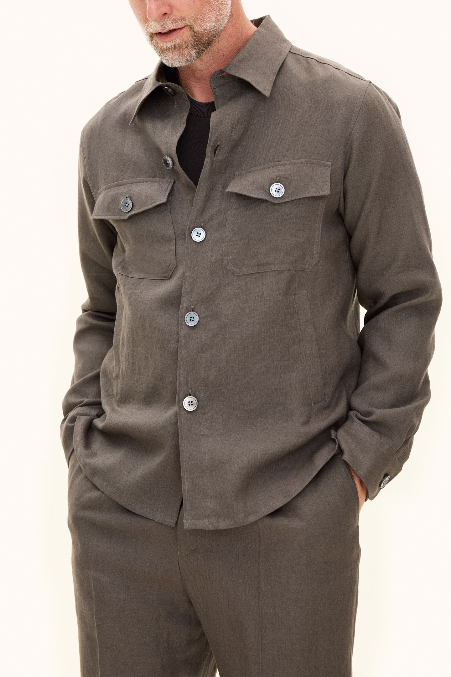 Meet our best-seller: Oscar Jacobson Maverick Regular Fit Linen Shirt Jacket. The perfect jacket for Summer. Made with real mother-of-pearl buttons.