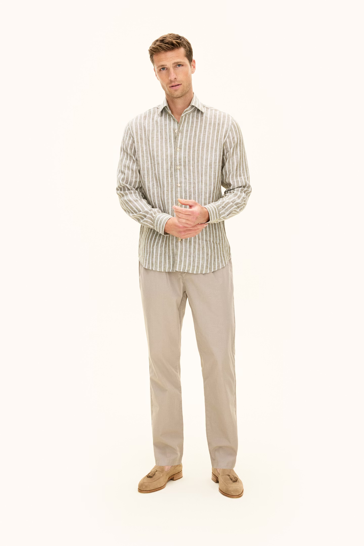 This regular fit shirt is made from a cool blend of cotton and linen for a light and airy feel. The subtle check pattern adds character without overwhelming, while the button-down collar gives it a casually refined look – perfect with both chinos and jeans.