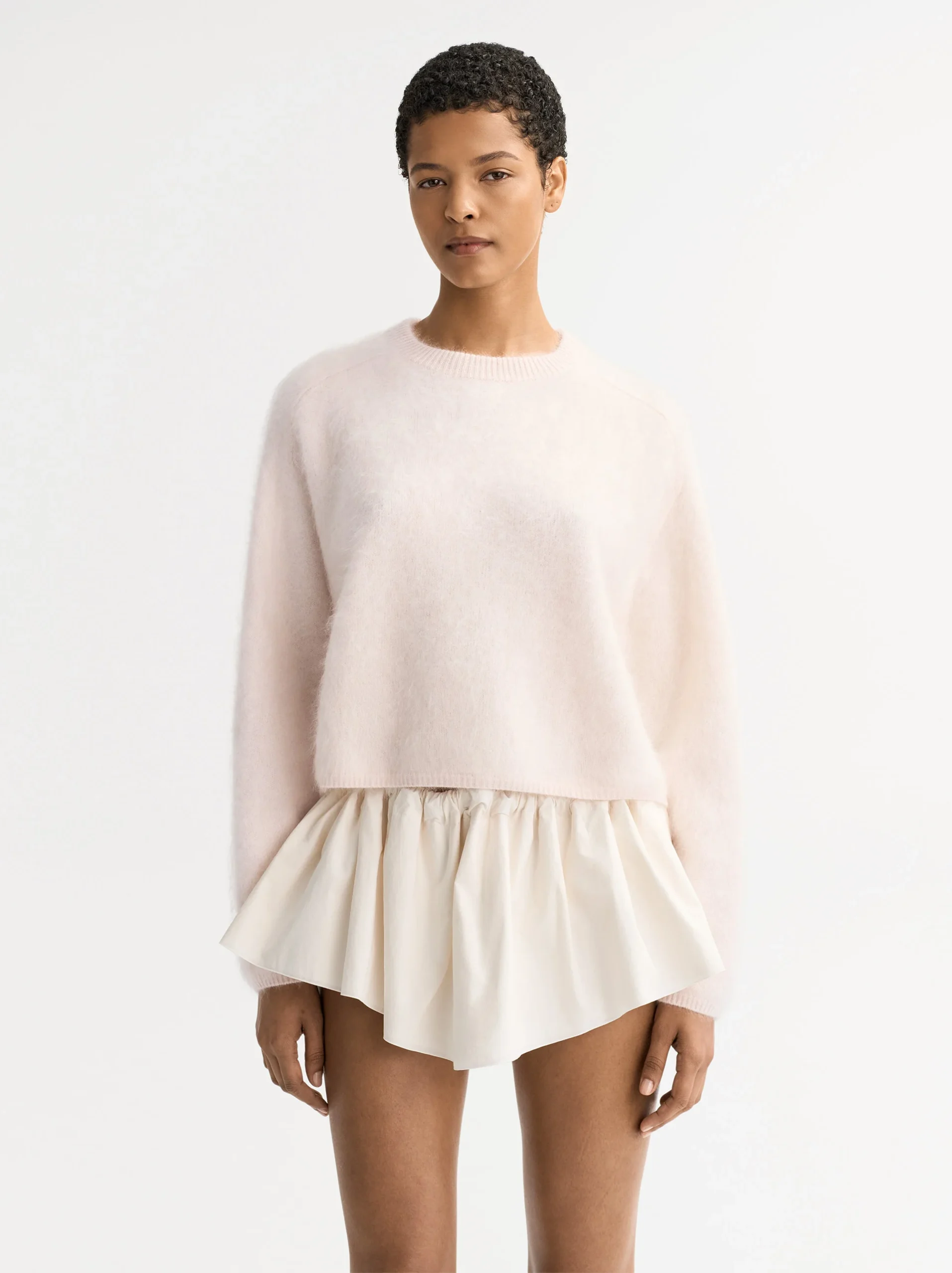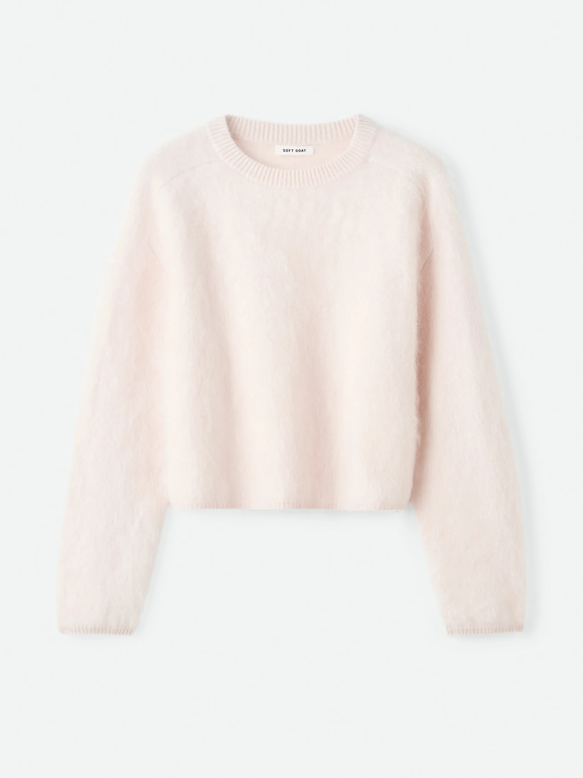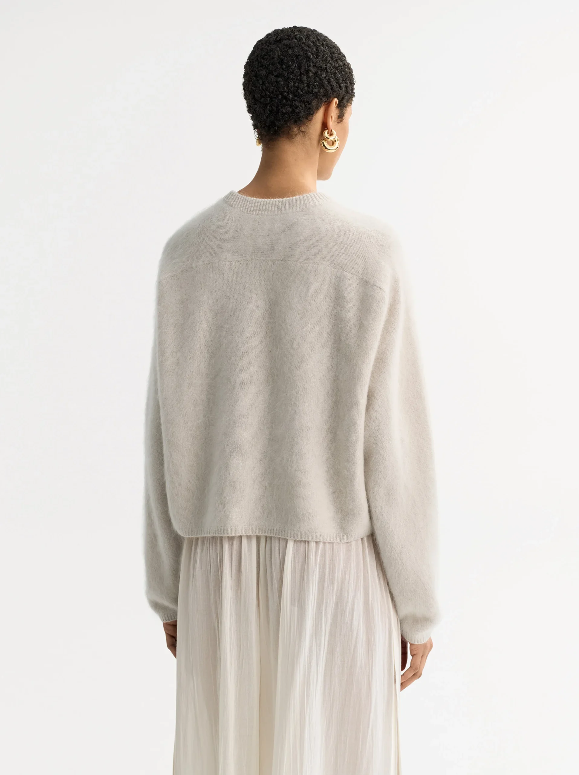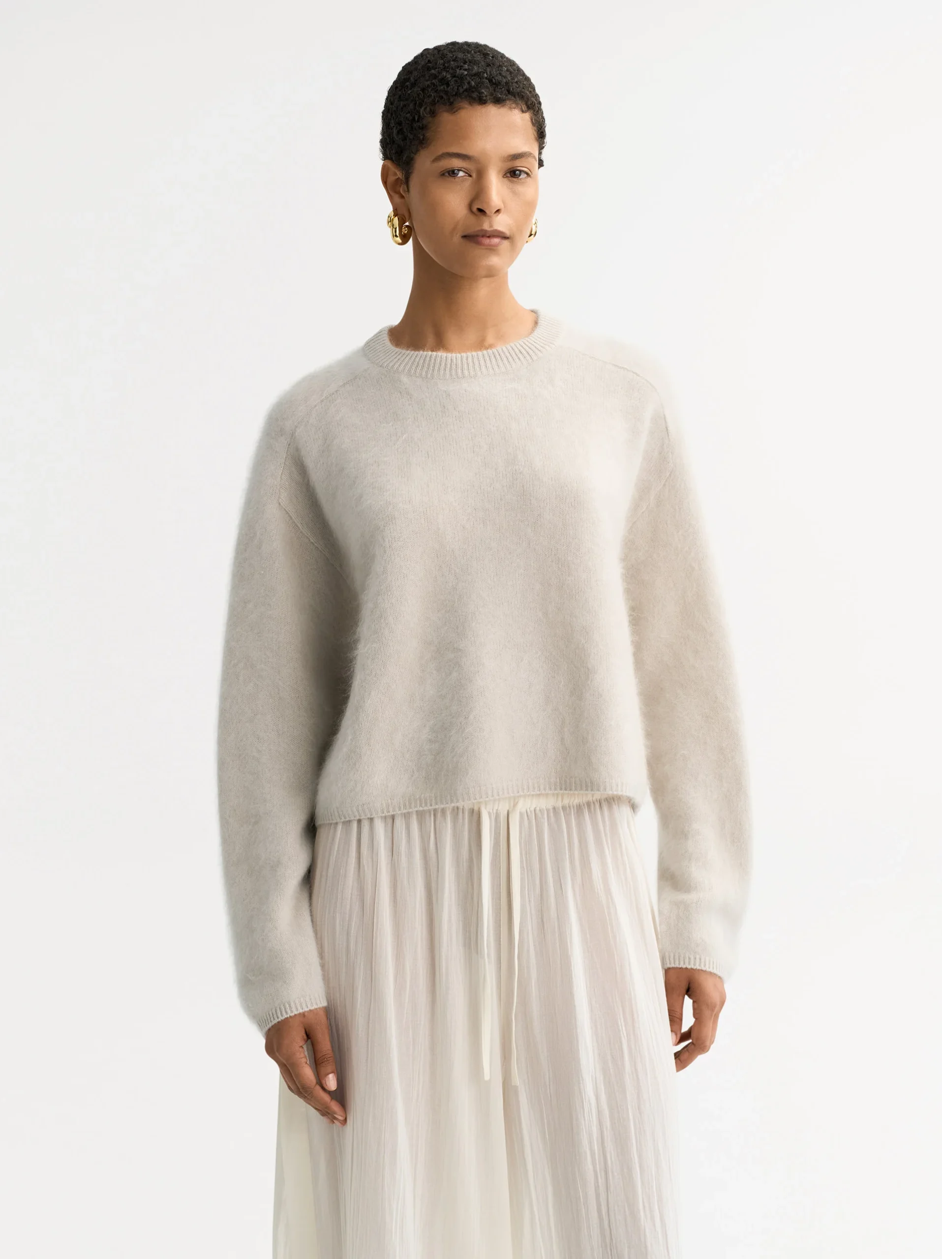 A crewneck knitted in 100% brushed cashmere.